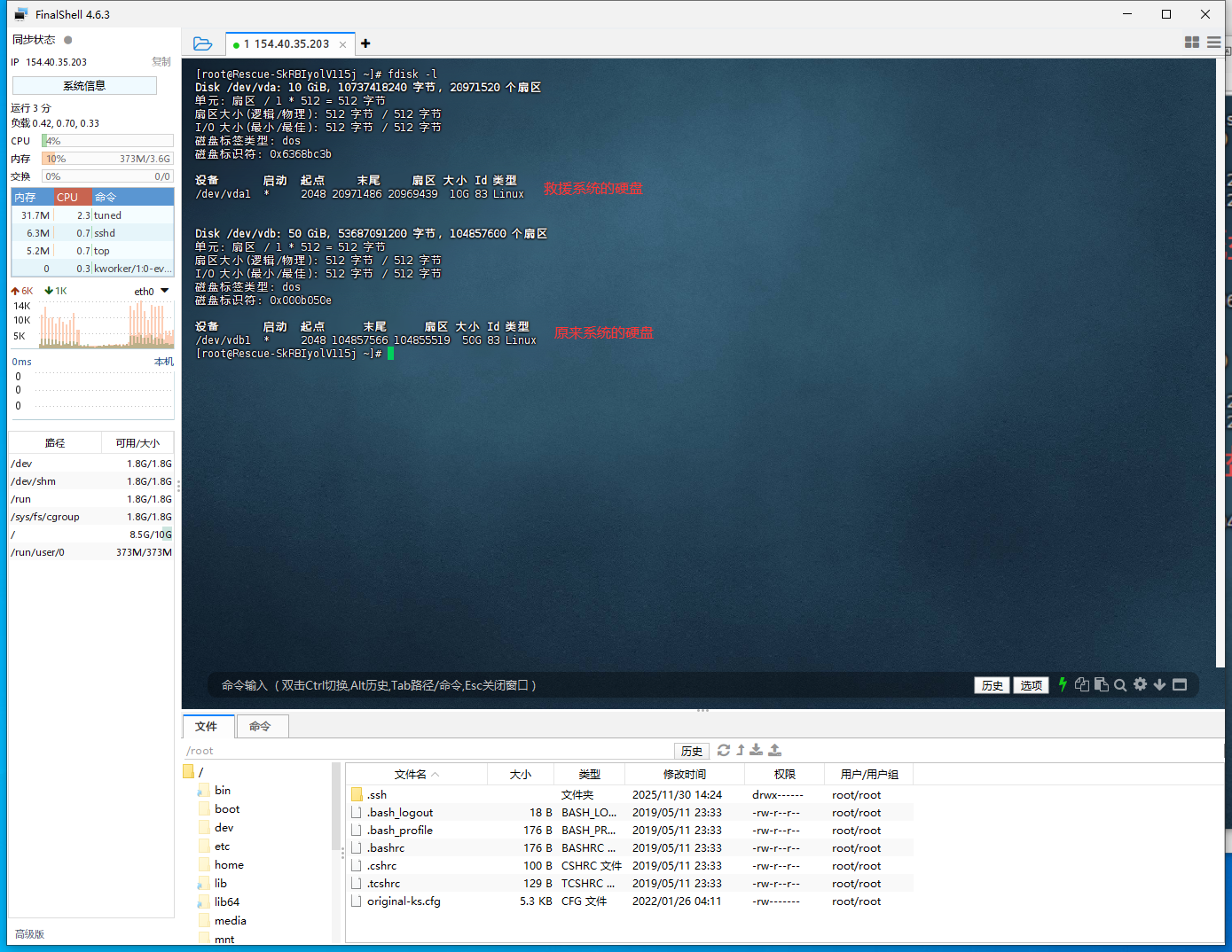 魔方云Linux救援系统挂载数据硬盘教程